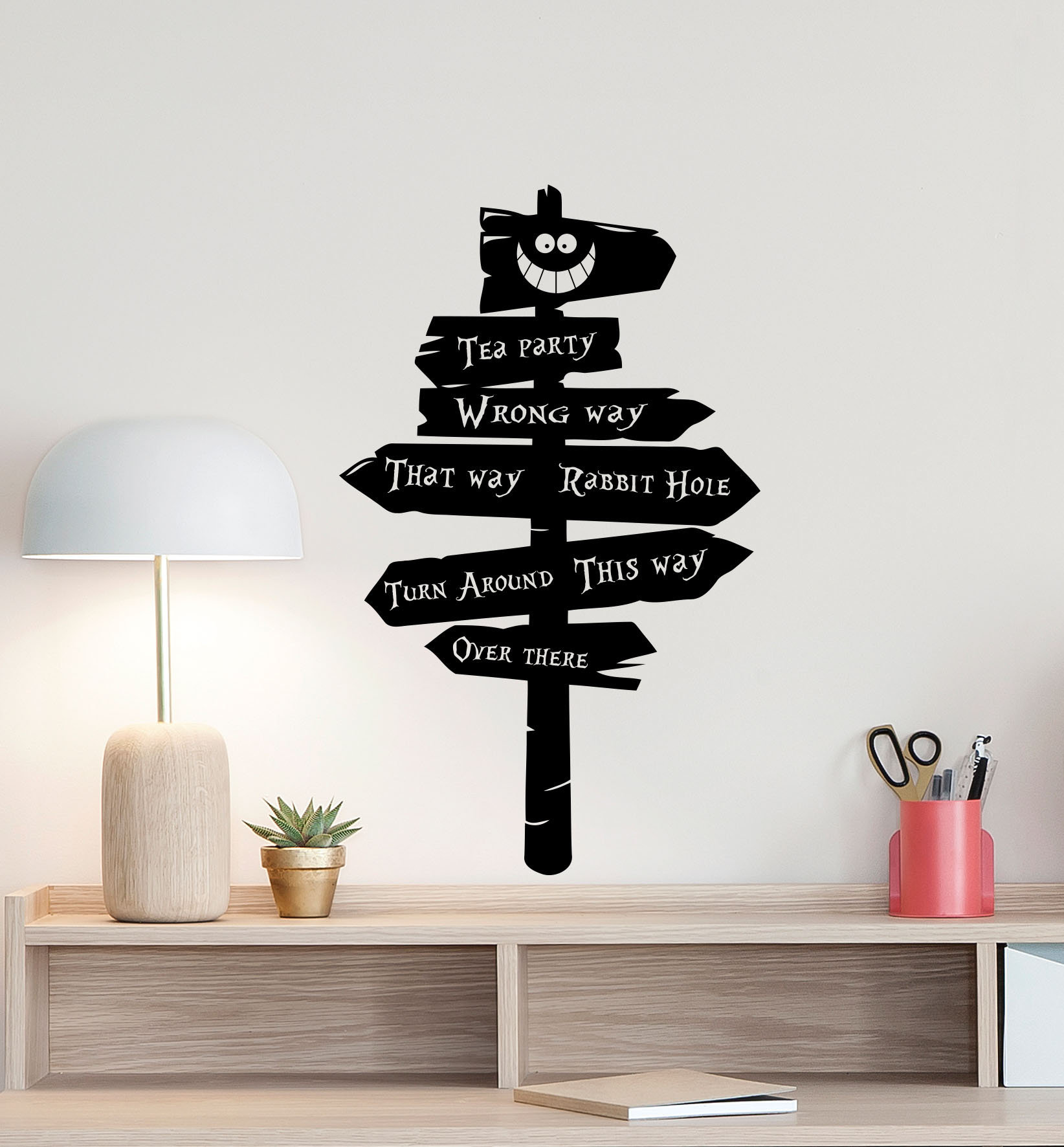 Road Sign Wall Decal Alice in Wonderland Decor Tea Party Gift