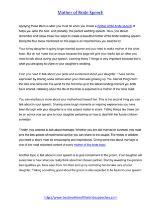 Wedding Speech, Mother of the Bride Speech, Mother of Bride Speech