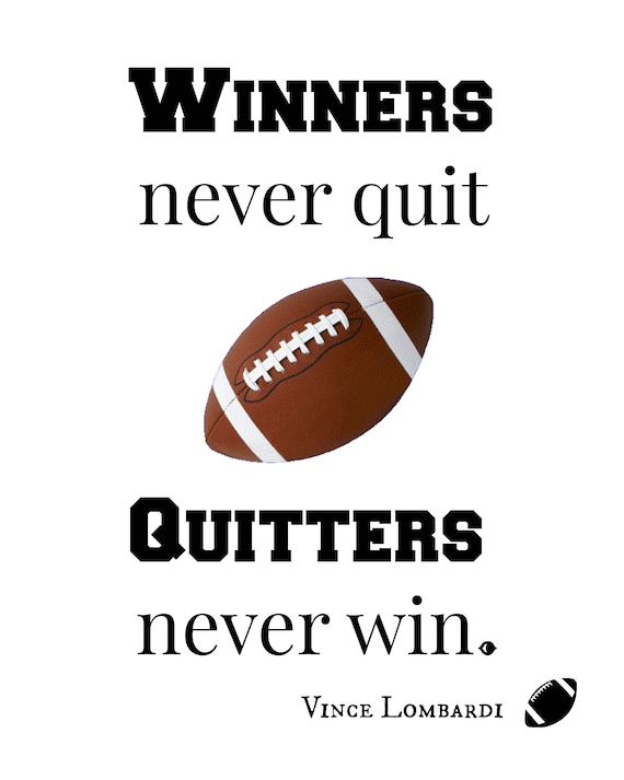 Football Print, Winners Never Quit, Quitters Never Win, Vince