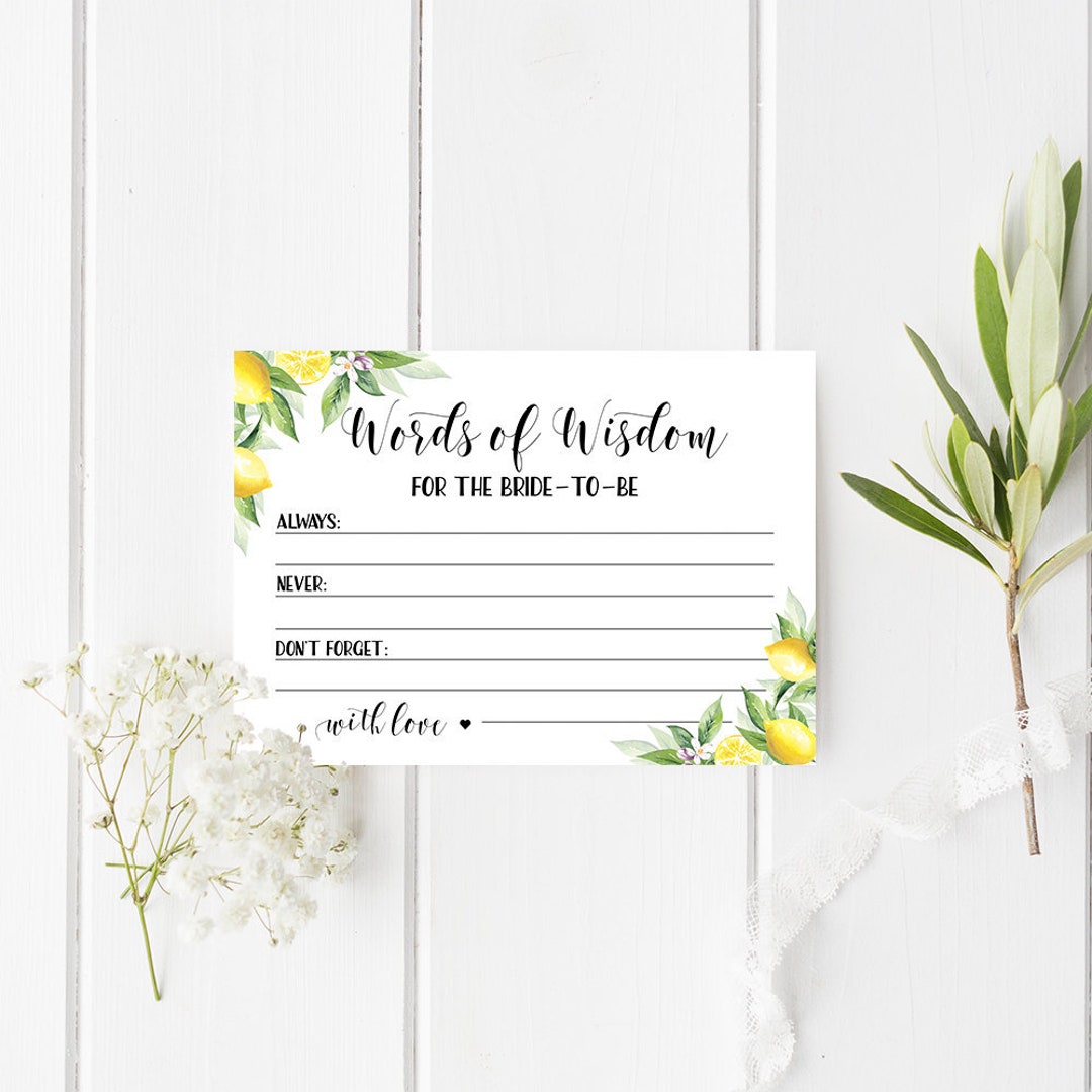 Words of Wisdom Card Template Editable Advice for Bride Printable